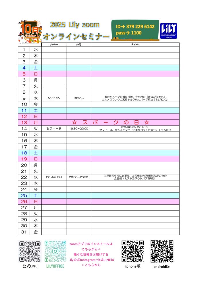 10月のオンラインセミナー